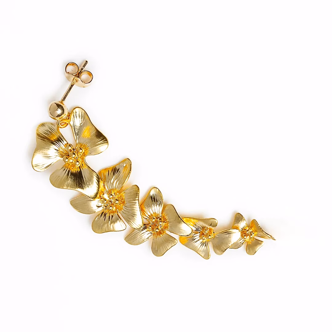 сережка-гвіздок зі срібла 925 із позолоченими квітами;