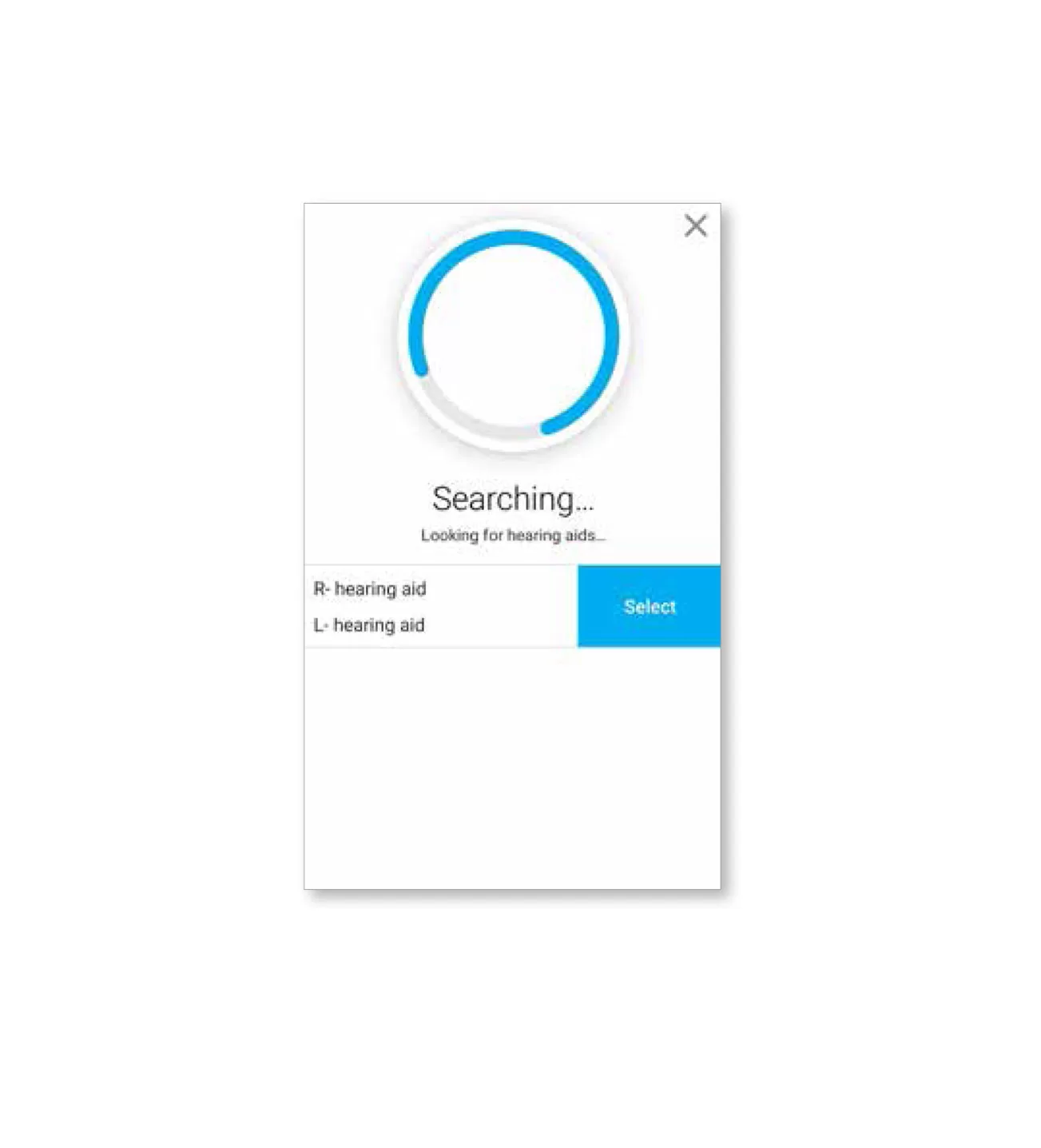 Если приложение обнаружило более одного комплекта устройств, нажмите кнопку на слуховом аппарате, и соответствующее устройство будет выделено в приложении.
